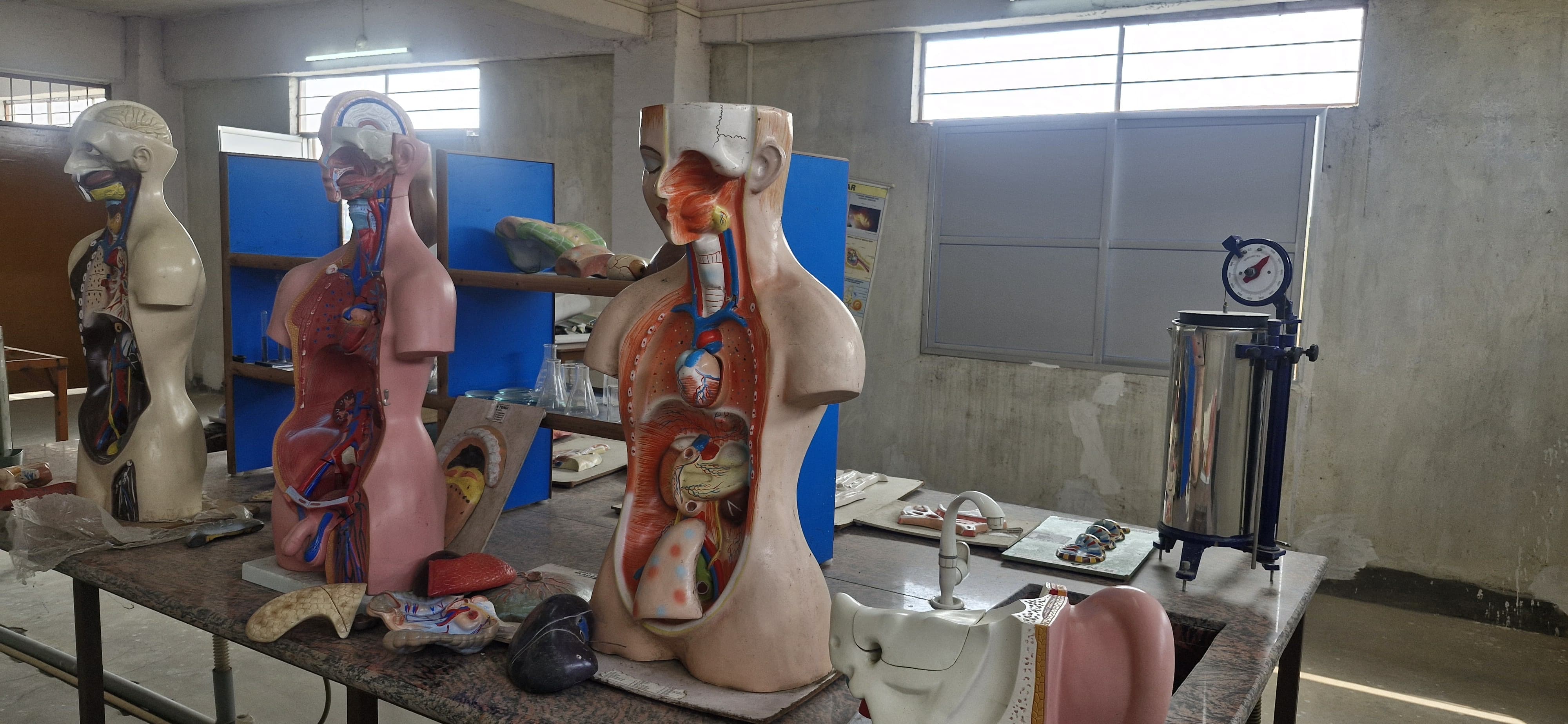 Audio-Visual Lab: Utilizes audio-visual aids like projectors and models for teaching and learning.
